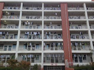 This is one of the dormitory blocks where they live six to a room, the toilets and ablutions are down the hall. As you can see they all do their own laundry.